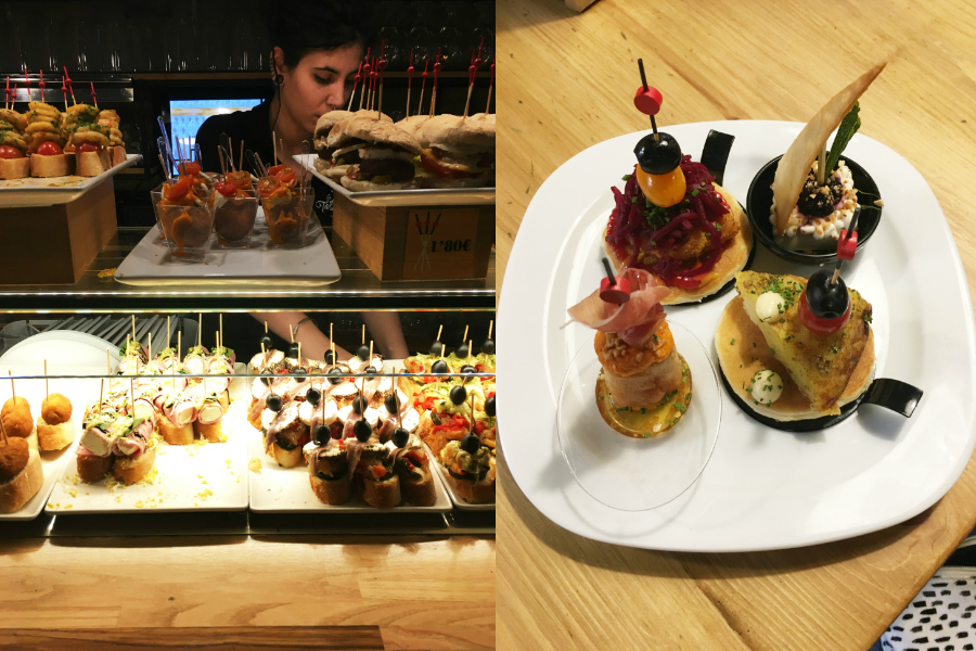 For the evening, we headed to the Poble Sec neighborhood to do a tapas bar crawl on Calle Blai. All of the restaurants on this road specialize in a type of tapa called pintxos or pinchos, which is a bite-sized tapa typically served on a slice of bread and speared with a toothpick. You help yourself from a bar lined with jewel-like pintxos, then the waitress counts up your toothpicks at the end of your meal to know how much to charge you. Our favorite was La Tasqueta de Blai, but we also liked Blai 9. It’s fun to stroll down the street, grab a caña (small beer) or vino blanco and a few pintxos at each bar.