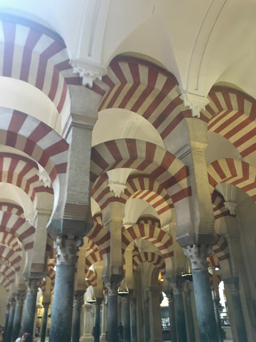 One of the reasons I wanted to travel to Andalusia was to see the Moorish architecture that is so unique to that region. La Mezquita is a perfect example of that. The site was originally a mosque, but was transformed into a cathedral after the Christians conquered the region in the 13th century. The combination of the two types of architecture is really stunning. You enter a hall filled with red-and-white striped arches, and can find tombs decorated with Catholic icons and statues lining the walls. At the center of the Mezquita, the architecture dramatically shifts to the Renaissance with a soaring domed ceiling decorated in white and gold relief. In other areas of the mosque-turned-cathedral, you can find gold-leaf Islamic designs and tile work. It’s truly a stunning combination of two very different design styles.