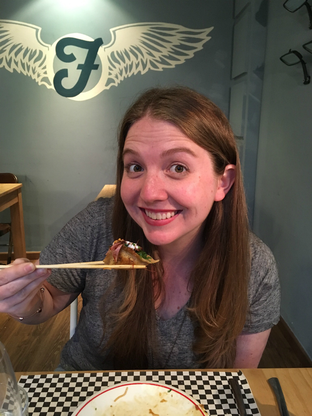 By the time we got to Cordoba, Andrew and I were a little burned out on traditional Spanish tapas. I mean, I love Iberico ham and croquetas as much as the next person, but I can’t eat that every night. So we tried two modern Spanish restaurants during our stay in Cordoba and loved them both. The first, La Furgo, was a fusion restaurant that included Asian and French influences. We loved the dumplings, which were filled with traditional Japanese flavors but topped with Spanish ham and saffron threads. Our second night, we dined at Garum 2.1, a modern Spanish tapas restaurant. We had a ton of great dishes here, but our favorite was an oxtail churro with a bitter chocolate dipping sauce—yum! Both of these restaurants are near the river in a really nice area that’s less touristy than the streets right around La Mesquita and La Alcazar.