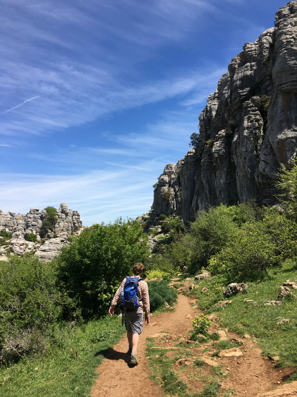 This portion of our trip was a nice change from our urban explorations, as we spent the majority of our time hiking the Spanish countryside. We drove our rental car from Cordoba to Ronda, but along the way we made a stop at El Torcal de Antequera, a beautiful nature reserve known for its stunning and unique rock formations. It was actually listed as one of the New York TImes’s 52 Places To Go in 2017. The winding drive will take you up a mountainside to a parking area and visitors center. From there, you can choose one of two loop routes. The green trail is shorter at just about a mile and should take about 45 minutes to hike. We chose the longer yellow route, which is approximately 2 miles and takes about two hours to hike. The trail is winding and rocky, so you’ll definitely want to wear good hiking shoes. The vistas throughout are spectacular, meandering along rocky ridges and through valleys surrounded by stone formations that reminded me of drip sand castles.