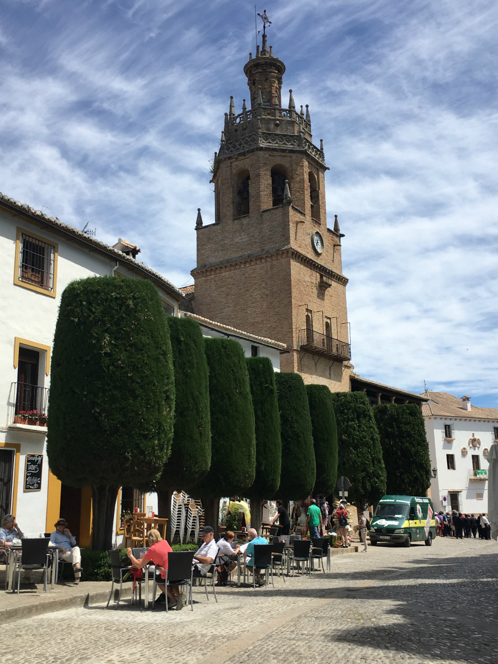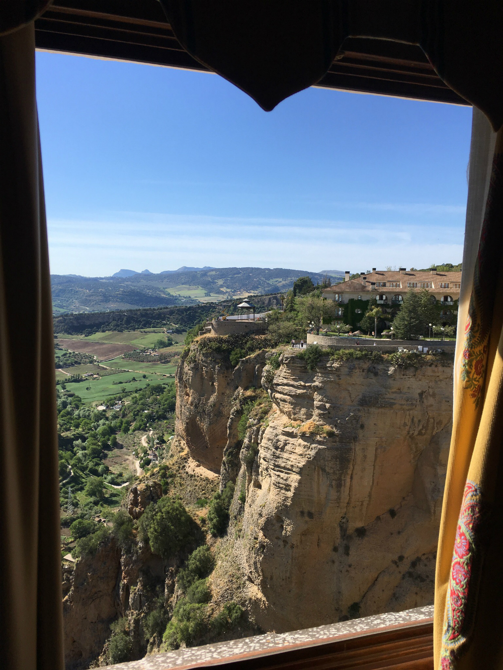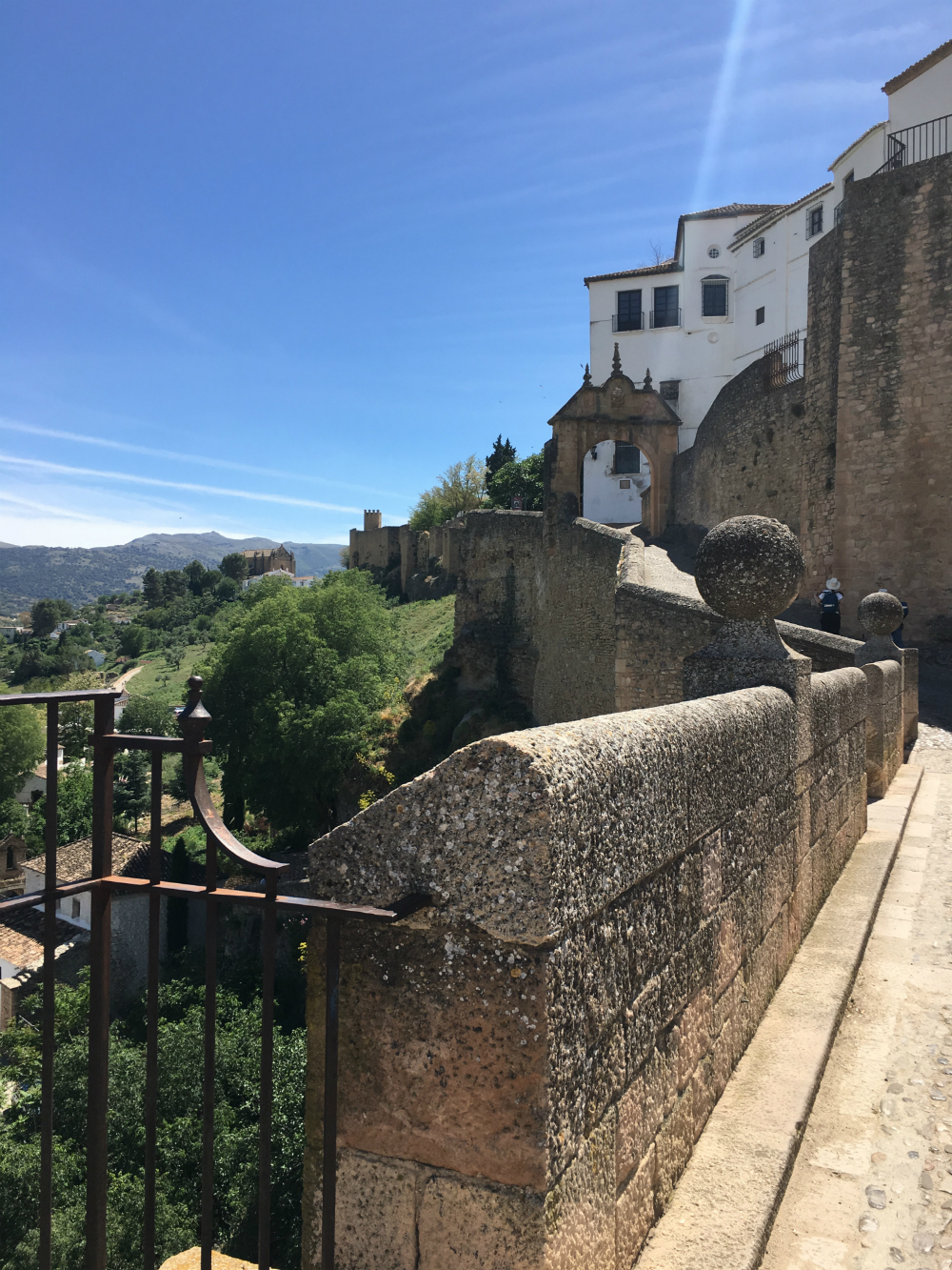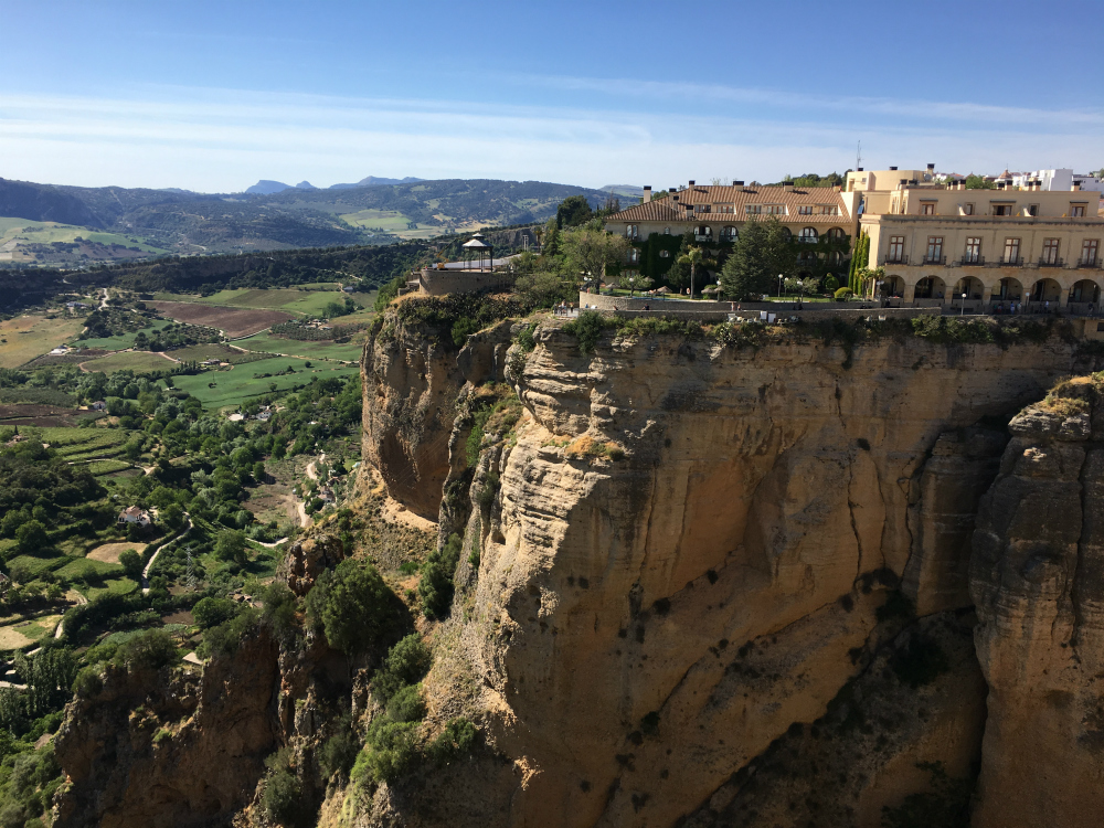 After a little rest, we headed to the opposite side of the Puente Nuevo bridge to explore a bit of the new city. This side of the city has more shops and restaurants, but also quaint squares filled with people enjoying an afternoon drink. We found a lovely park with a promenade right along the cliffside, with stunning views of the surrounding countryside.