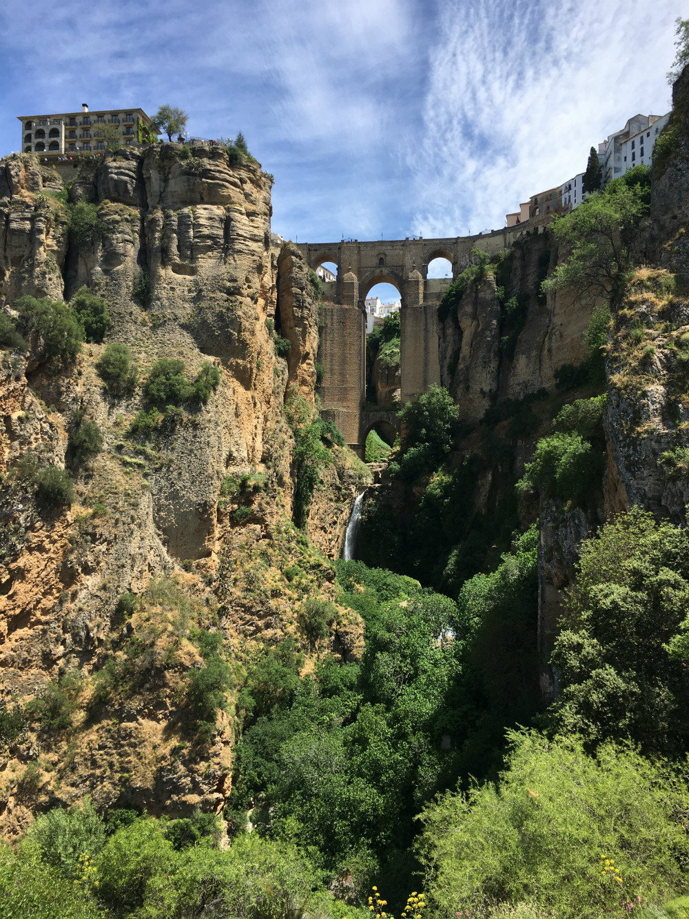 The small town of Ronda in Andalusia was my favorite destination in Spain. It’s the kind of town that makes the tour bus schedule as a photo op and lunch spot, but I found Ronda to be well worth a two-day stay. Reason 1: You will need at least a full day to explore everything this gorgeous city on a hill has to offer. Ronda has a completely unique geography; the city is built atop a hill and a deep gorge bisects it into an older historic center and a newer (emphasis on the “er”—it’s still like hundreds of years old) section bustling with restaurants and shops. The sections are connected by two spectacular bridges, which are a draw in and of themselves. The New Bridge, or Puente Nuevo, looks torn straight from the pages of a fantasy novel, with towering stone supports and a waterfall cascading through it. If that doesn’t convince you to add Ronda to your itinerary, I don’t know what will.