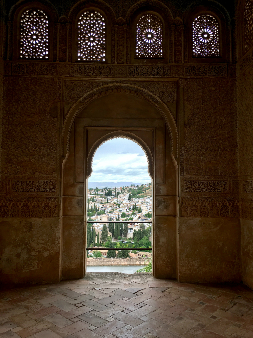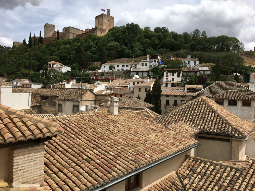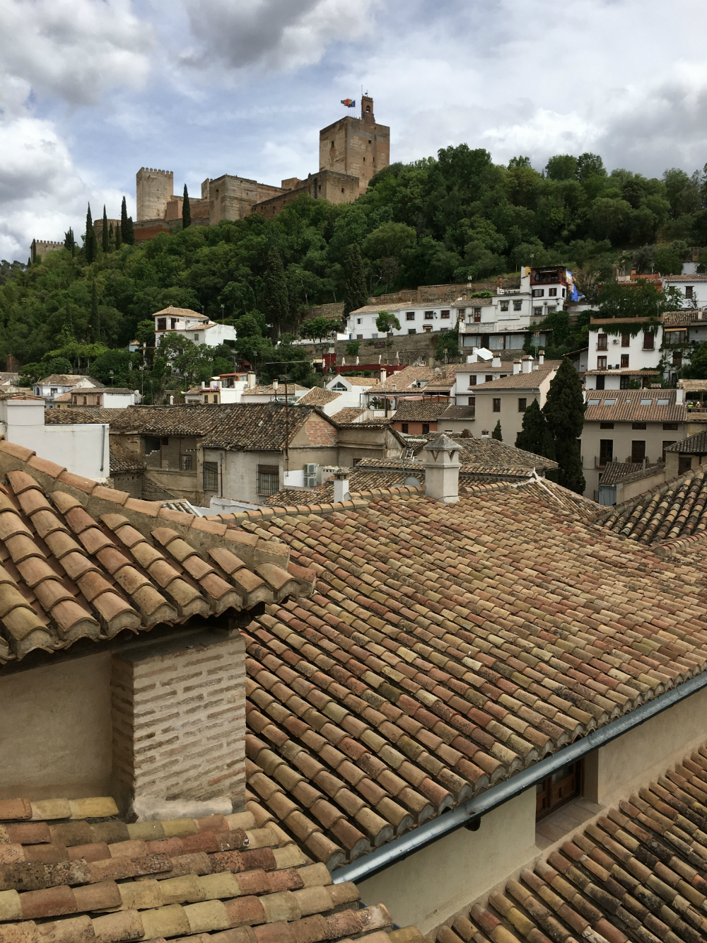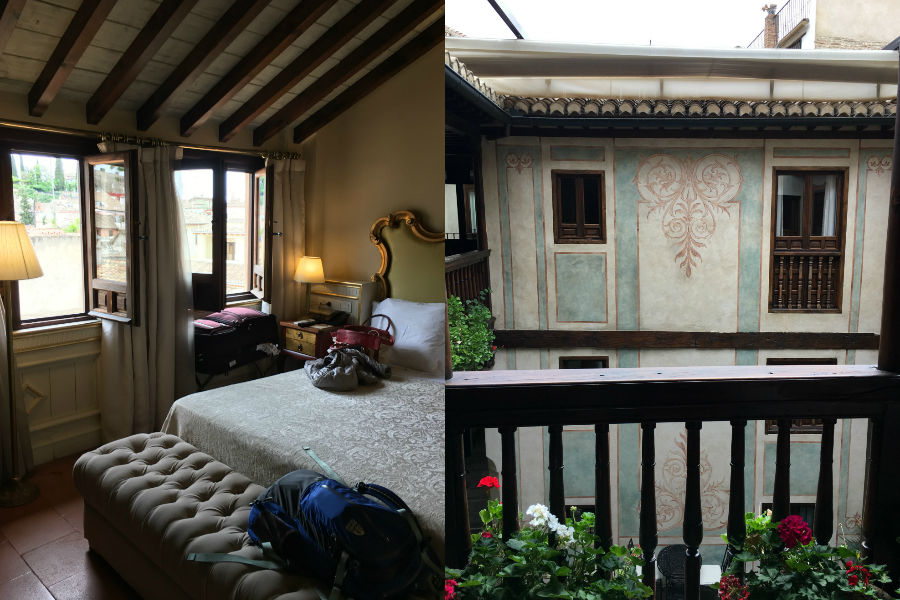 We stayed at the Casa 1800 Granada in a room with an Alhambra view. We loved our room and the hotel itself, especially the complimentary 4pm afternoon tea they offered every day with sandwiches and snacks. The hotel is beautiful, with an open-air courtyard and stylish furnishings. The location is both a plus and a minus. It is a very short walk to the Alhambra, but this means it is smack dab in the middle of one of the most touristy sections of Granada. The shops and restaurants right around our hotel were not to our liking at all. We definitely had to venture into different neighborhoods for meals, especially since the hotel does not have a restaurant or bar, only breakfast and the daily tea service.