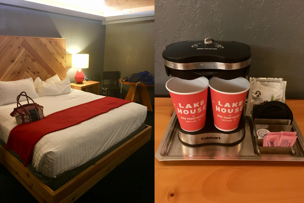 Because of the accident on the highway and our lunch stop, we didn’t end up reaching Lake Placid until around 7 o’clock, right after sunset. We checked into our hotel, the Lake House at Lake Placid, and then went out for drinks and dinner. The Lake House is part of the High Peaks Resort and gives you access to the amenities at two other properties in town. Our hotel included an indoor pool and jacuzzi, a private patio off our room, and a lobby decorated in rustic Adirondack gear with a pool table and foosball. Though there is a bar in the lobby, it wasn’t open at all while we were there. Our second night though a group of empty nesters took over the bar area on a reunion of sorts and shared their food and drinks with everyone hanging out in the lobby. We definitely found the vibe to be friendly, open and welcoming and enjoyed playing pool with some of the other guests.