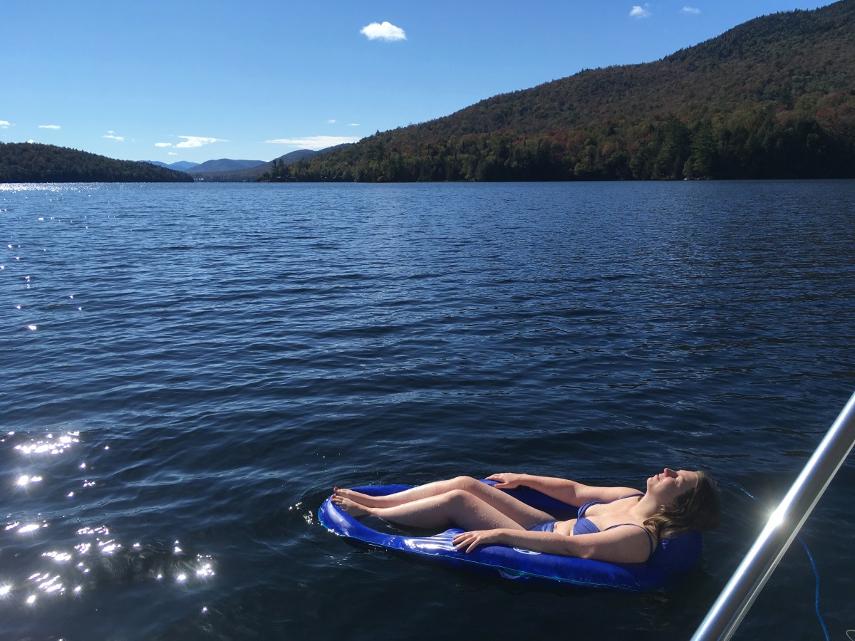 Our first day, we decided to rent a boat to explore the lake itself. Andrew’s dream retirement scenario involves us, on a lake somewhere (probably Maine), taking our boat out to fish, swim and just generally relax on the water. So of course we had to test out his vision for our future.