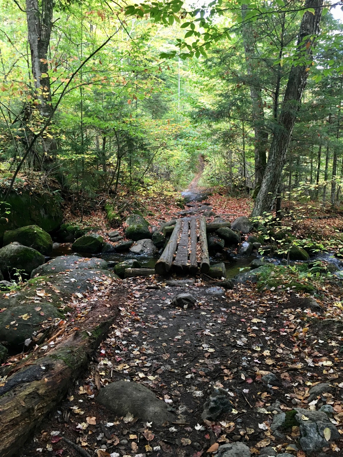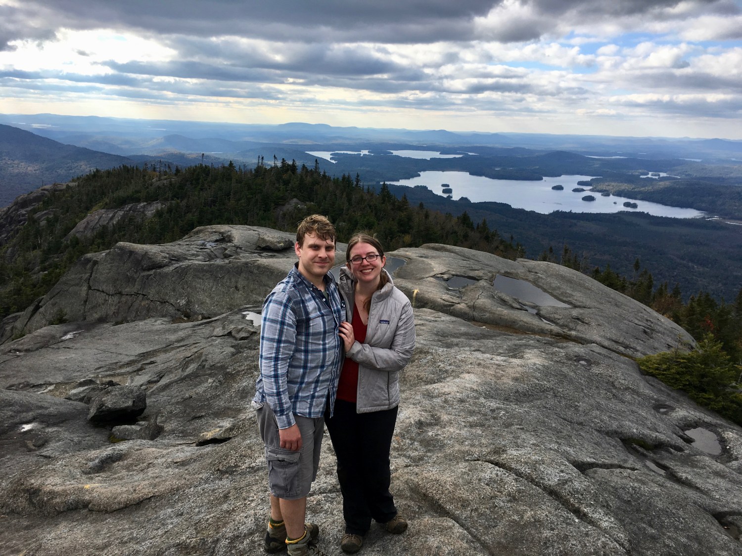 On our second full day, we hiked Mt. Ampersand, a 5.4-mile out-and-back hike that took us about 4 hours. Before the trip, I had picked out a few hikes that met our general requirements for hiking: 2-4 hours to the top of a mountain with great views. I showed Andrew the ones I had picked out, and, of course, he picked the longest and hardest one I had selected. I mean, granted, the name of the mountain is obviously perfect for two English majors. It starts off on a level meandering path through a thick forest and across a few brooks. It gets rocky as the elevation starts to rise, and the rocks increase in frequency until you’re basically climbing a rough stone stairway. That part was pretty brutal physically—I was definitely having flashbacks to hiking Machu Picchu and mentally cursing Andrew for picking the hardest hike. Once we got through the stone stairs, there’s a bit of scrambling up boulders and then you’re at the peak. The view was spectacular and totally worth it! I forgave Andrew, we took some pictures, ate a meat stick and headed back down.