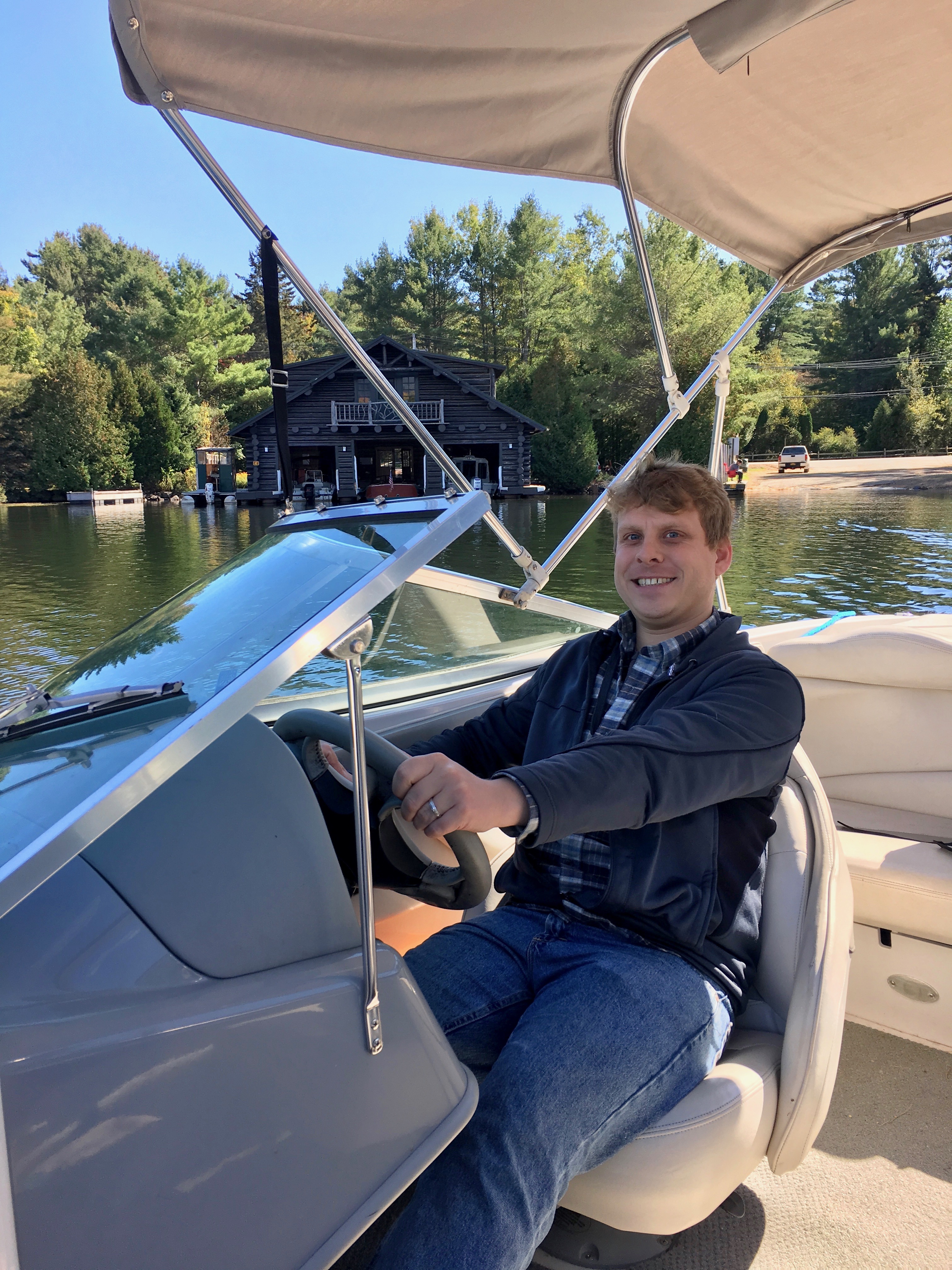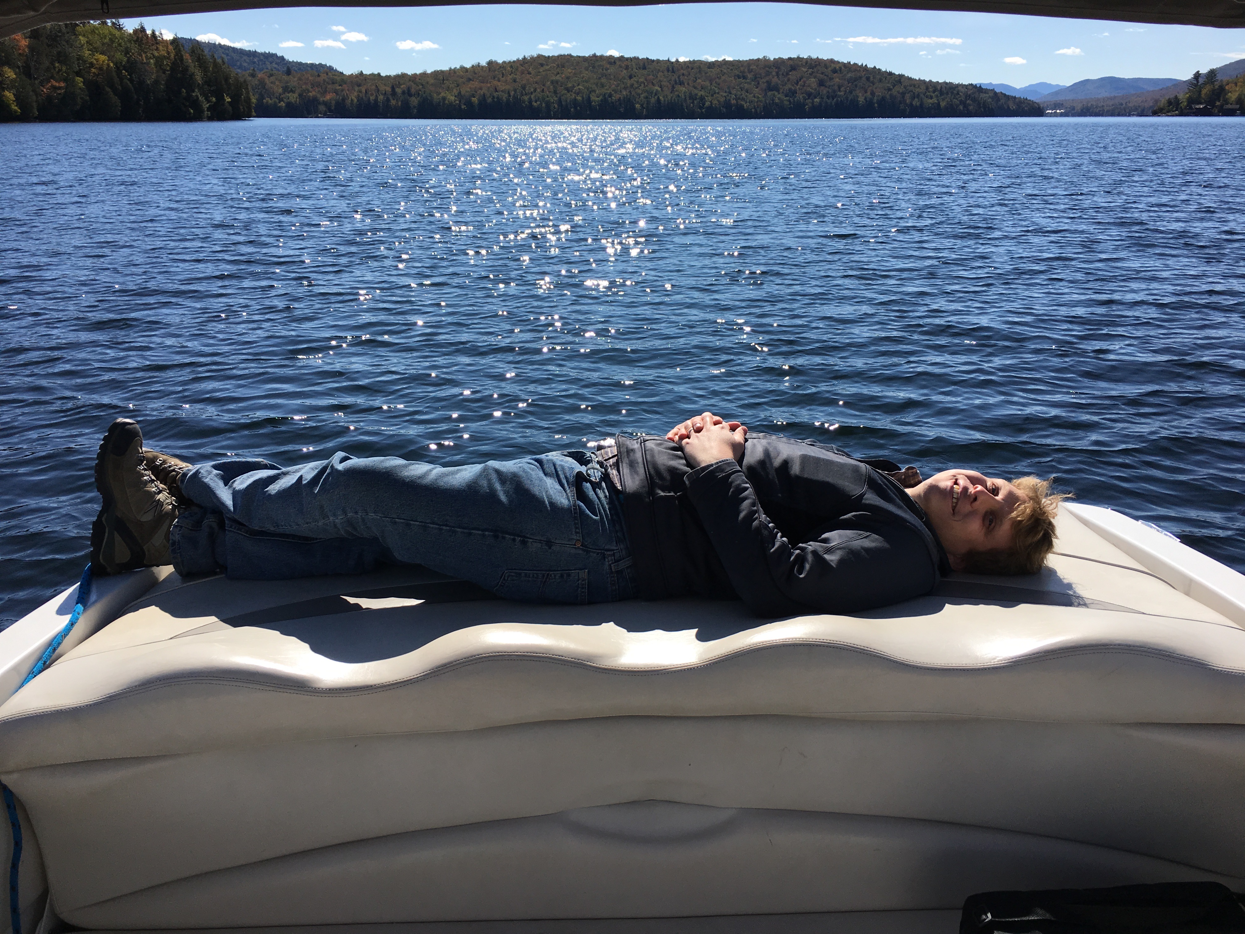 Our first day, we decided to rent a boat to explore the lake itself. Andrew’s dream retirement scenario involves us, on a lake somewhere (probably Maine), taking our boat out to fish, swim and just generally relax on the water. So of course we had to test out his vision for our future.