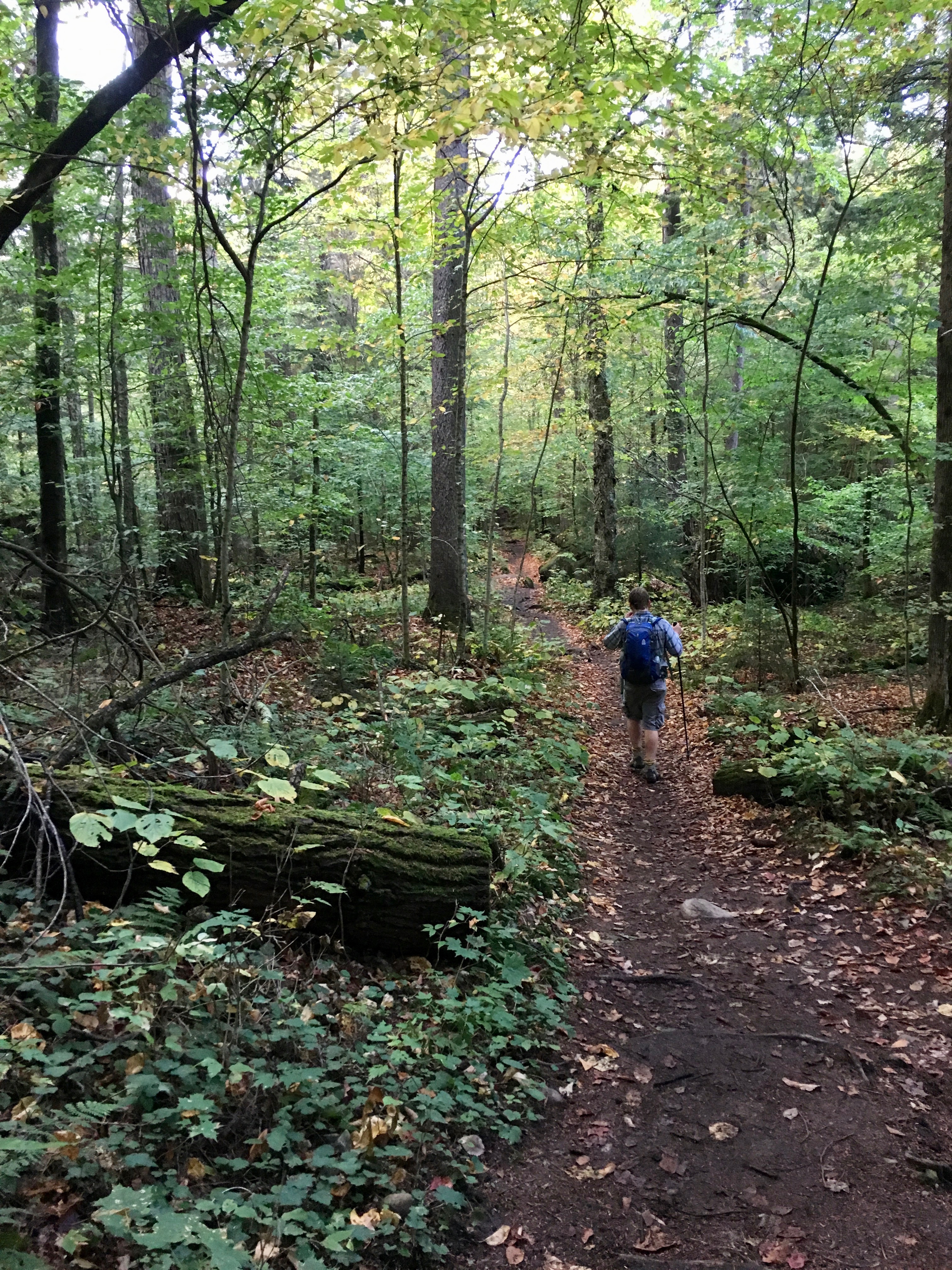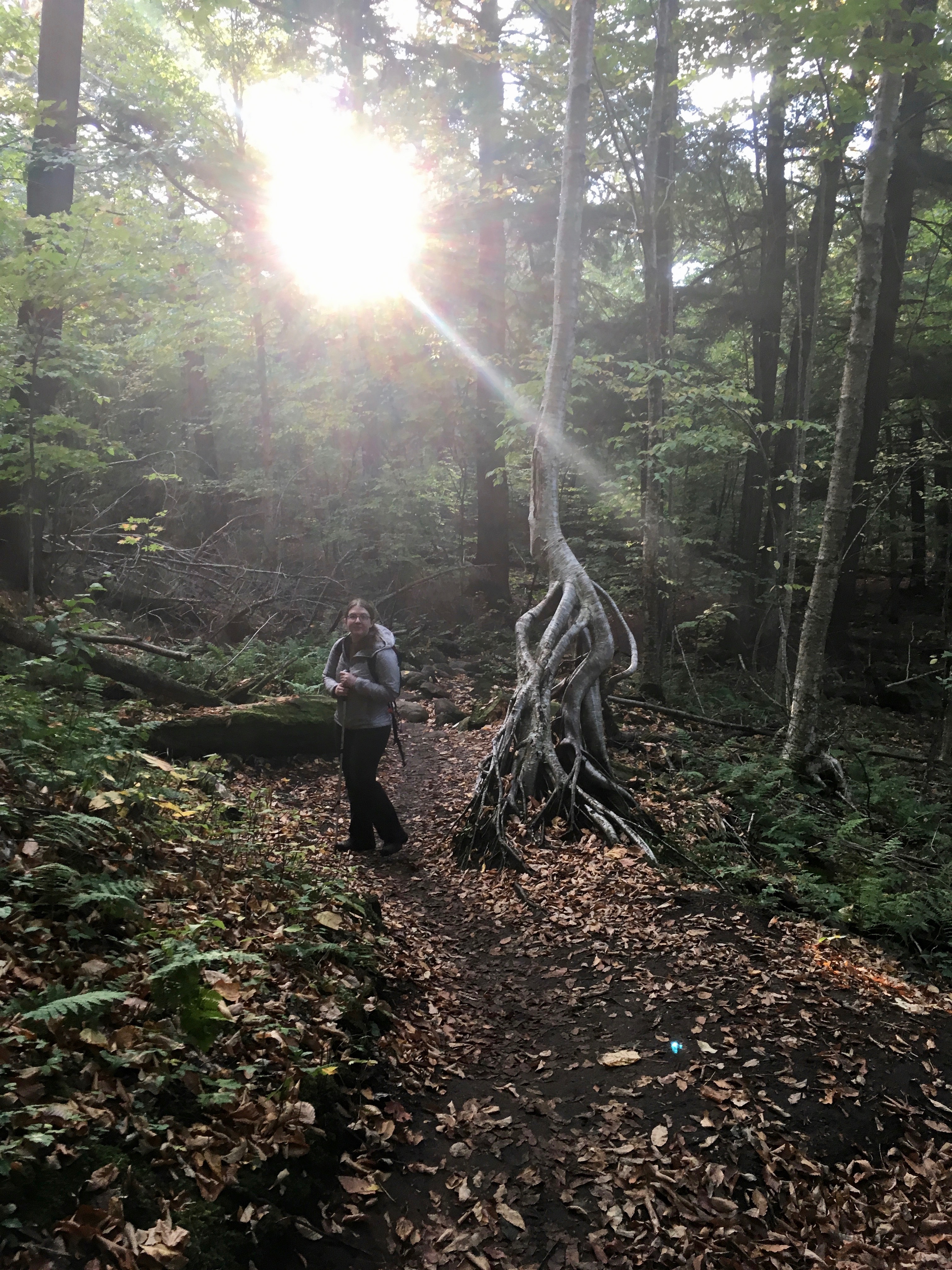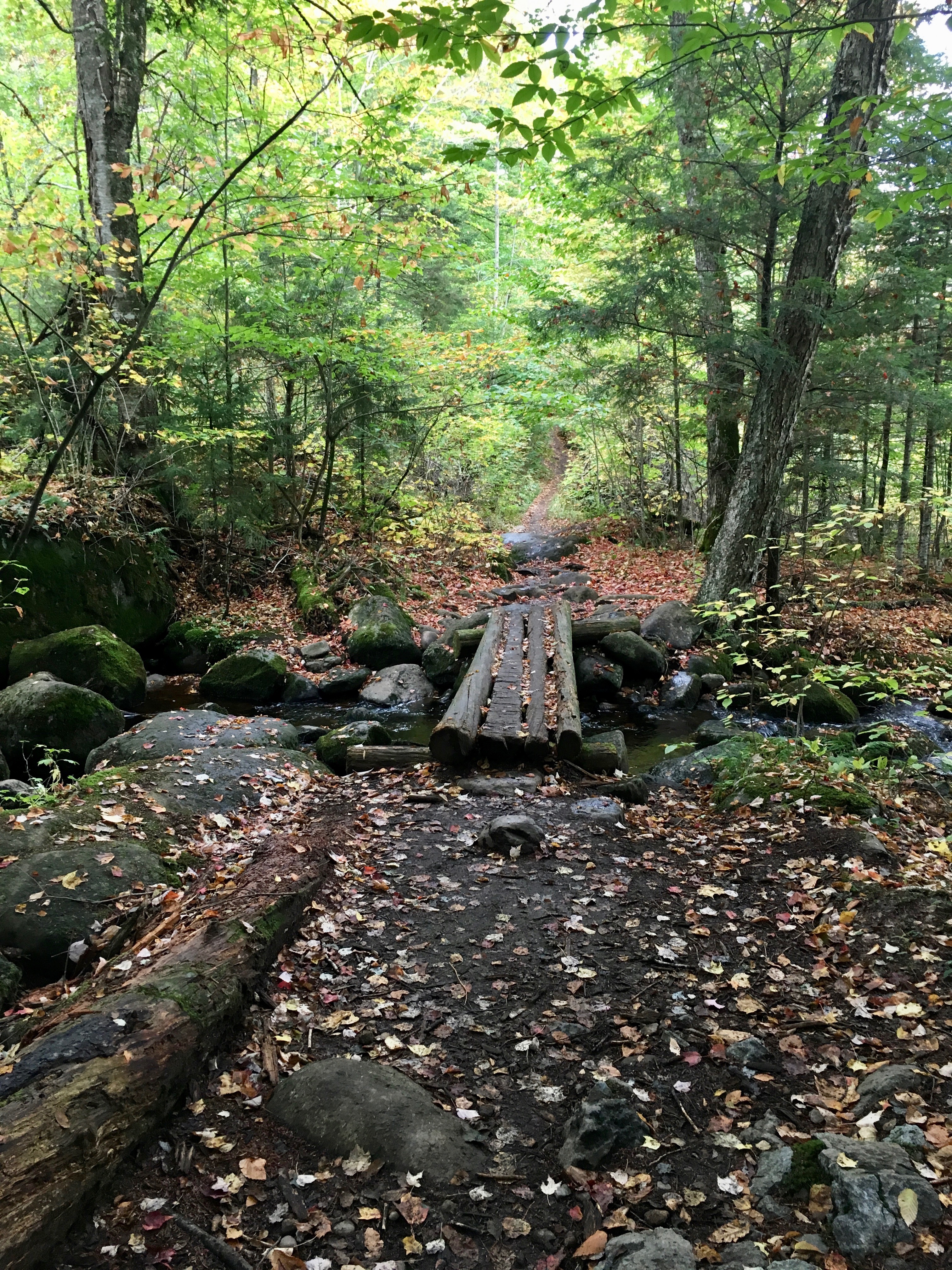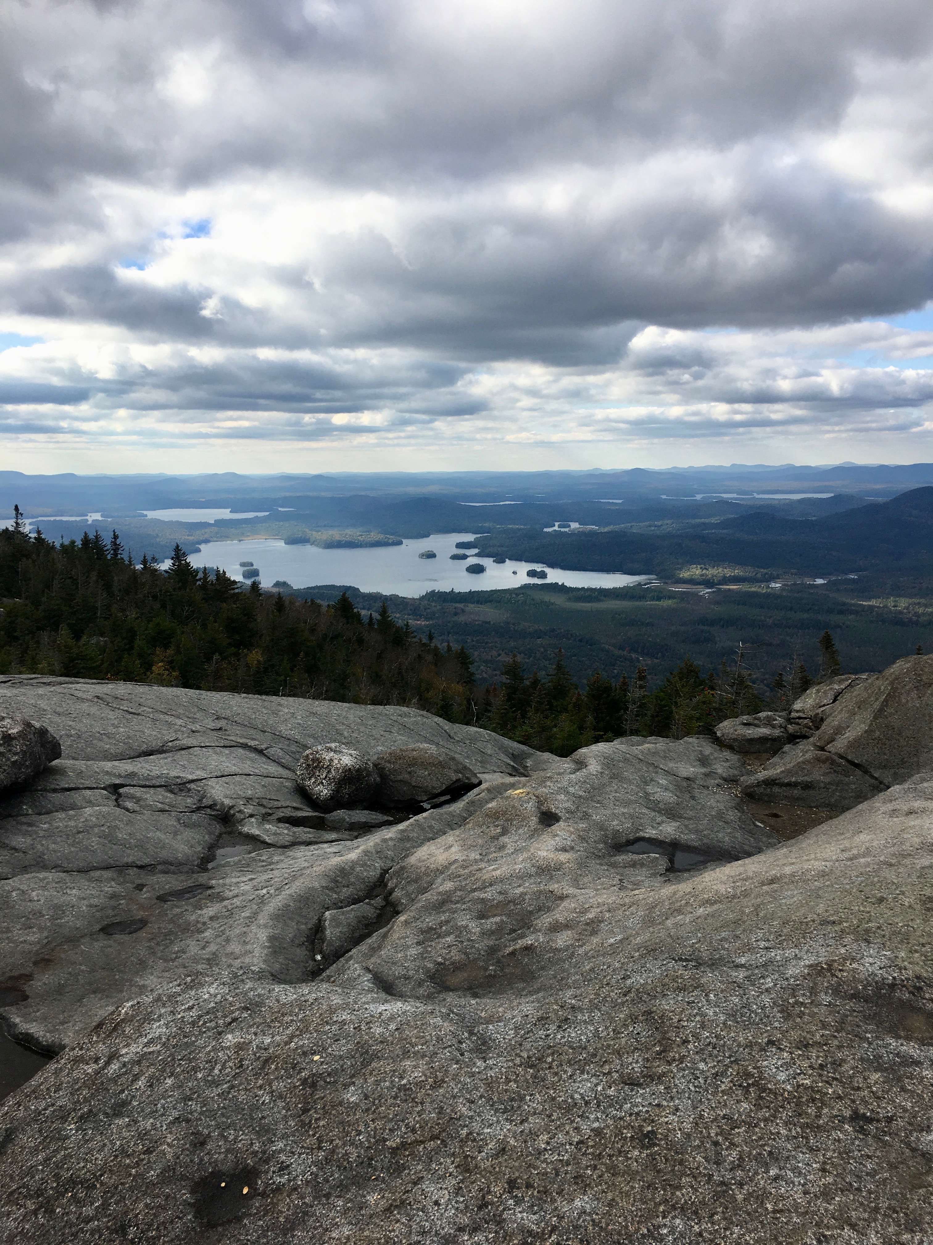 On our second full day, we hiked Mt. Ampersand, a 5.4-mile out-and-back hike that took us about 4 hours. Before the trip, I had picked out a few hikes that met our general requirements for hiking: 2-4 hours to the top of a mountain with great views. I showed Andrew the ones I had picked out, and, of course, he picked the longest and hardest one I had selected. I mean, granted, the name of the mountain is obviously perfect for two English majors. It starts off on a level meandering path through a thick forest and across a few brooks. It gets rocky as the elevation starts to rise, and the rocks increase in frequency until you’re basically climbing a rough stone stairway. That part was pretty brutal physically—I was definitely having flashbacks to hiking Machu Picchu and mentally cursing Andrew for picking the hardest hike. Once we got through the stone stairs, there’s a bit of scrambling up boulders and then you’re at the peak. The view was spectacular and totally worth it! I forgave Andrew, we took some pictures, ate a meat stick and headed back down.
